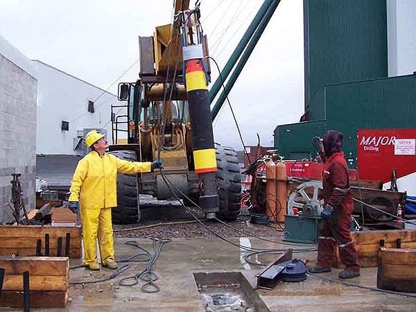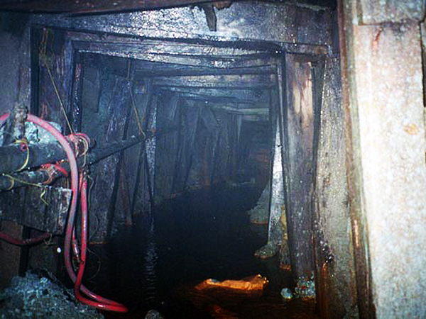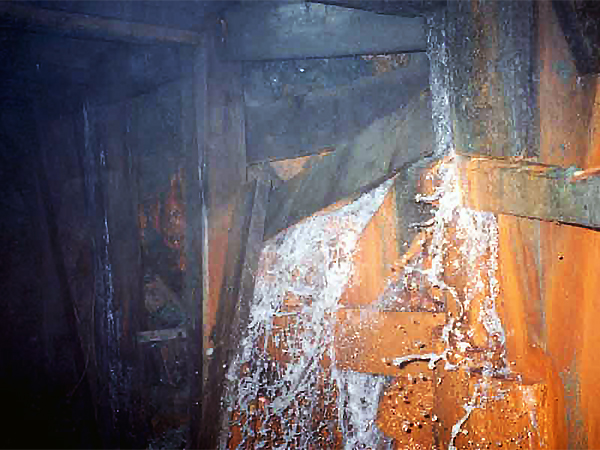The mining company engaged Peter White to travel to the site and supervise grouting operations to seal the flowing drill hole so that ramp development work could resume.