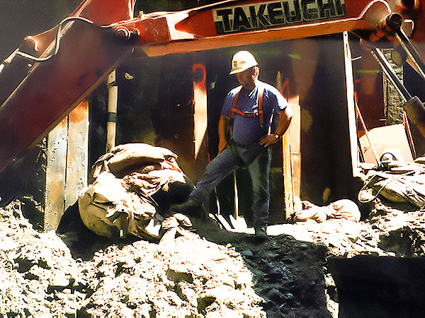 Worker supervising the excavation work at Vancouver Wharves